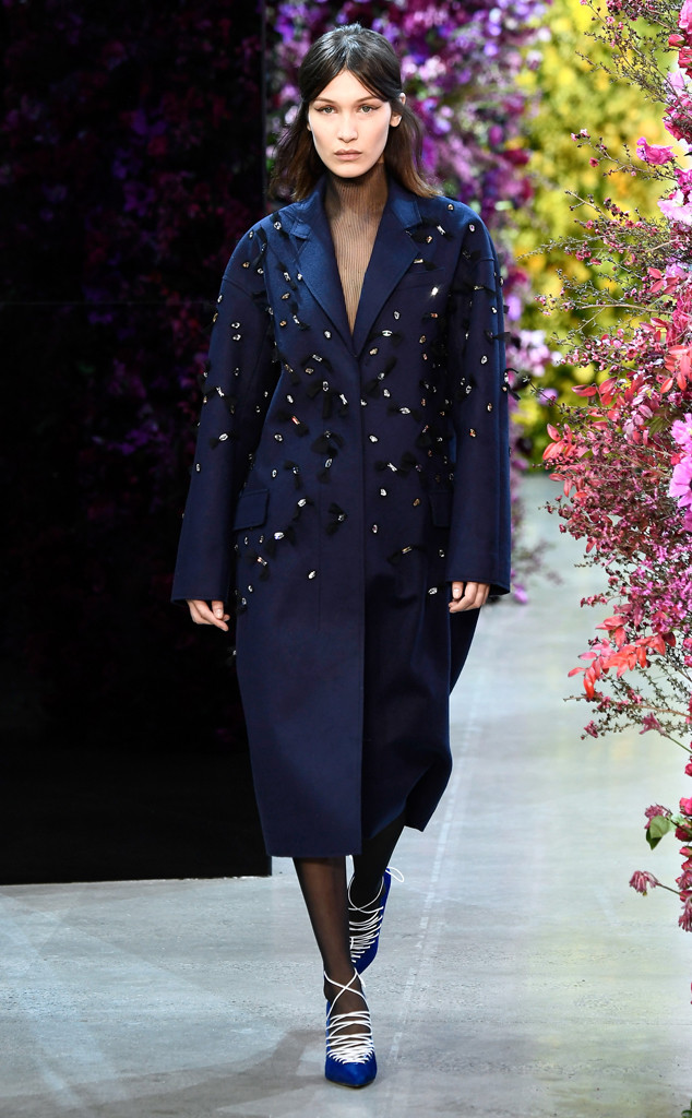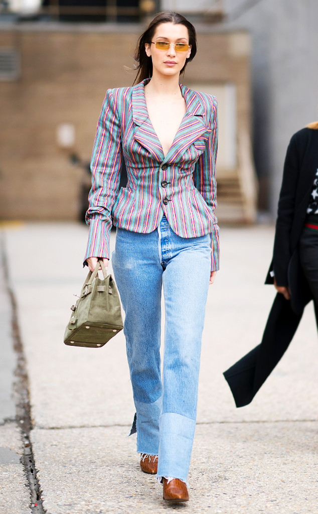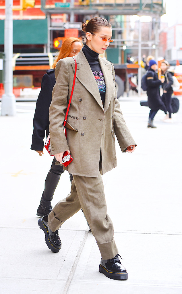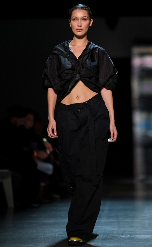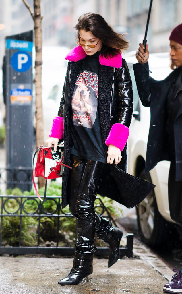 That's not to say older sister Gigi Hadid or models like Karlie Kloss or Jourdan Dunn haven't put in the work—we now know how busy a day in the life of a supermodel can be. But when it comes to outfit changes, Bella is noticeably leading the pack. When she's not walking in Jason Wu, Alexander Wang or closing down Prabal Gurung and Brandon Maxwell (alongside Gigi), she's killing the street-style game in Vivienne Westwood on one day and rocking a PVC puffer with hot-pink sleeves on the next.