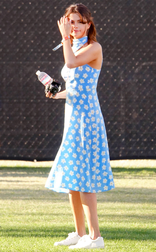 Last year, the star wore a similar dress from French brand Rouje with Puma platform sneakers (currently on sale) and red lipstick with minimal makeup (another French trend). To add a personal touch, she added the Coach Selena Grace Bag, which she designed in partnership with the brand.