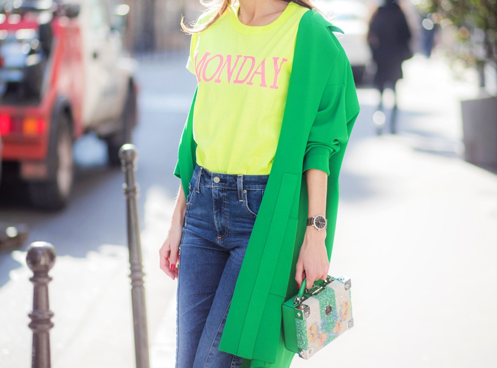 A pause to ask ourselves: Do we like this trend? Could we pull this trend off in our own lives? Often times it's a pass (purely for practicality reasons), but this one's got us pondering a bit harder. If you haven't noticed a handful of famous faces have been sporting neon green out and about as of late, and we're kind of into it. It's a bold shade, yes. But it's also surprisingly flattering and, quite honestly, a welcome pop of color amongst the typical muted fall color palette we gravitate towards.